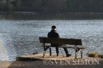 20.01.2026, Essen, Ein Senior/ aelterer Mann sitzt auf einer Bank und schaut auf den B... |