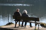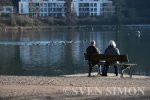 20.01.2026, Essen, Zwei Senioren m/w Frau/Mann sitzen auf einer Bank und schauen auf d... |