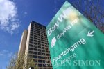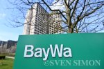 06.04.2026, Muenchen, Agrarkonzern BayWa Schriftzug,Logo,Emblem,Firmenemblem an der BayWa... |