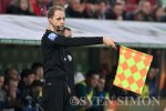 27.02.2026, Augsburg, Linienrichter Dr. Martin Thomsen hebt die Fahne.