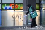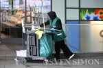 17.03.2026, Essen, Eine Reinigungskraft Putzfrau putzt eine Glasscheibe am Hauptbahnho... |