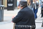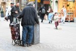 19.03.2026, Essen, Ein Mann sitzt auf einer Bank und bettelt um Geld, Bettler, Bettele... |