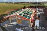 26.03.2026, Salmdorf, Luftaufnahme einer neuen landwirtschaftlichen Halle im Rohbau mit m... |