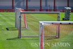 27.04.2026, Muenchen, Traininsgtor stehen auf dem Trainingsplatz .